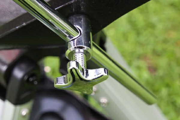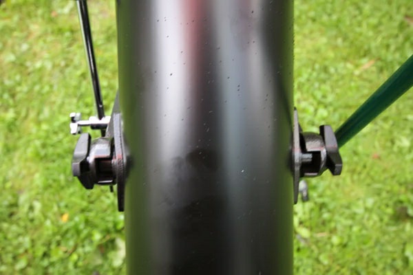 The other end has a locking knob. The tube is installed between fork arms and is fixed with a pair of screws. Don't overtighten the screws – the construction should be easily manageable, but don't make it too loose either – the tube should not bend under its own weight.