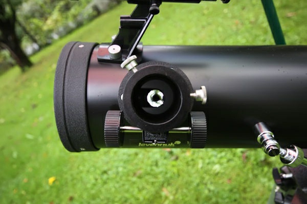 The eyepiece node consists of the composite tube of ‘plastic-foil’ type and the rack attached to it. All these components are placed in the metal body. The Levenhuk Skyline 76x700 AZ telescope allows you to use various eyepieces and other accessories with 1.25’’ barrel diameter. The focuser backlash can be regulated with two screws at its base. The focuser knobs are large and very convenient.