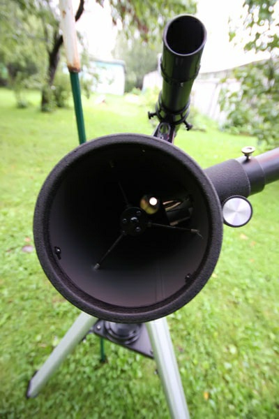 There’s a special metal protection on the back of the primary mirror. The telescope’s alignment is done with three collimation screws.