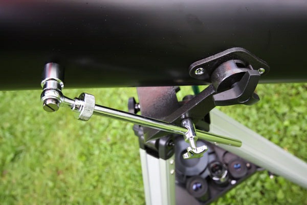 The telescope is installed on the Alt-azimuth mount (which is designed as a single unit with a tripod). To avoid an arbitrary inclination of the tube, a slow-motion control rod is attached to the telescope tube and the fork.