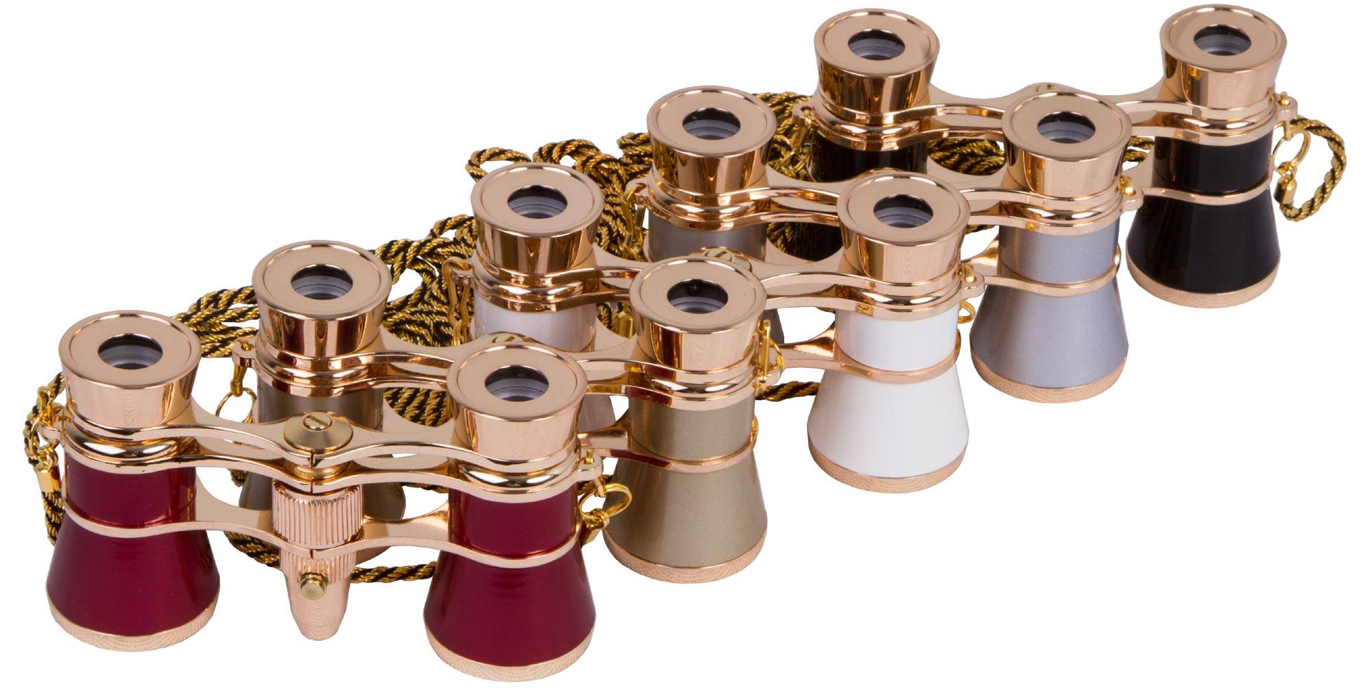 Levenhuk Broadway 325F serisi – LED ışıklı, şık sahne sanatı dürbünleri. Dürbün ince bir metal zincirle donatılmıştır. Her model depolama ve taşıma için bir yumuşak kese ve optik parçalar için temizleme bezi ile birlikte sunulur. Ambalaj kutusunda tiyatro temalı bir baskı bulunur.