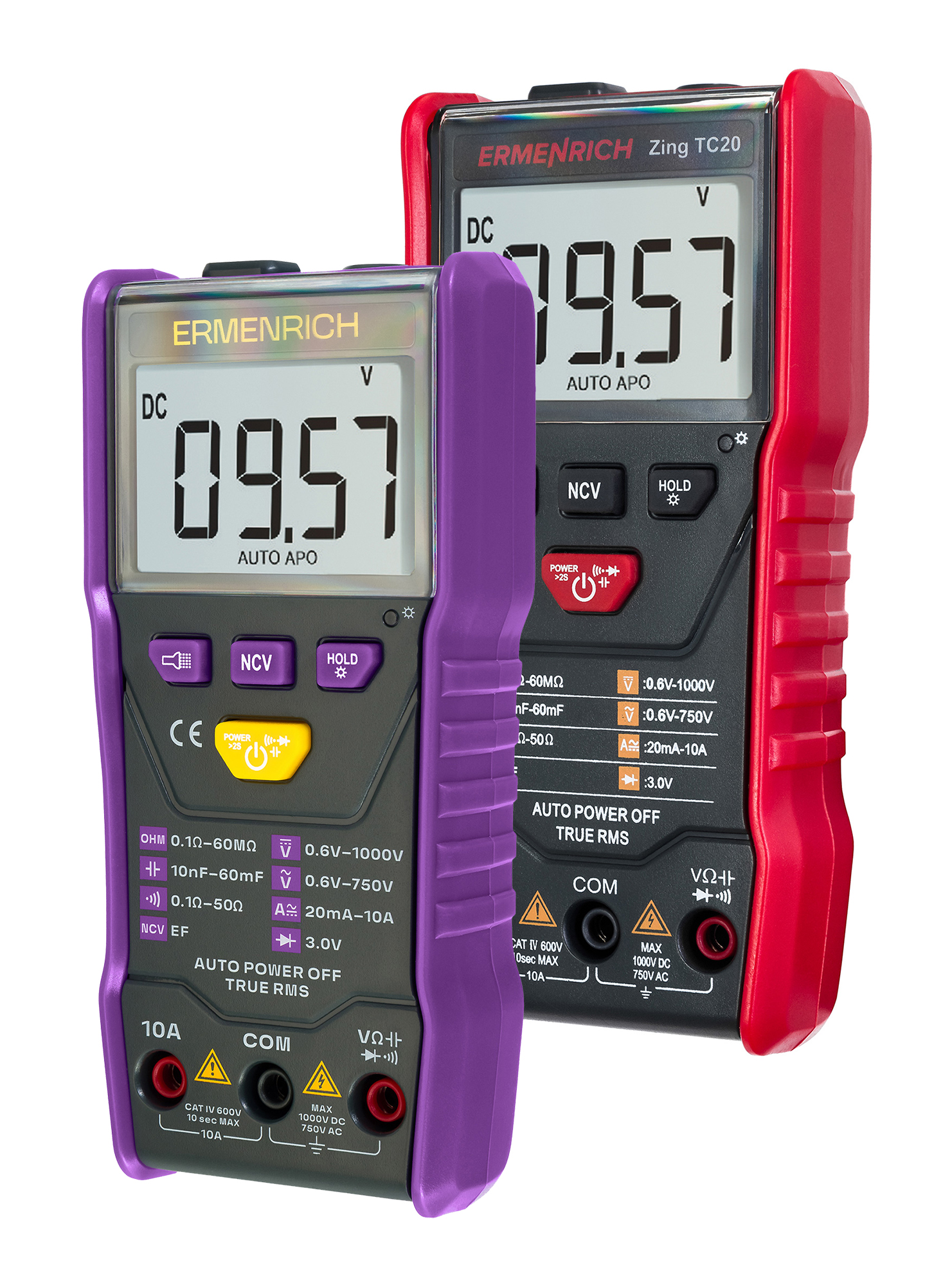 Ermenrich Zing TC20 Dijital Multimetre, DC/AC voltajı, DC/AC akımı, direnç ve kapasitansı ölçmek için kullanılan taşınabilir bir cihazdır. Döner anahtarı yoktur, yani ölçüm limiti otomatik olarak ayarlanır. Aşırı yüklenmelere karşı korumalı olan cihaz güvenilir ve stabildir ve yüksek ölçüm doğruluğu sağlar. Telsiz iletişimiyle ilgilenenler, tamirciler ve profesyonel elektrikçiler için en uygunudur.