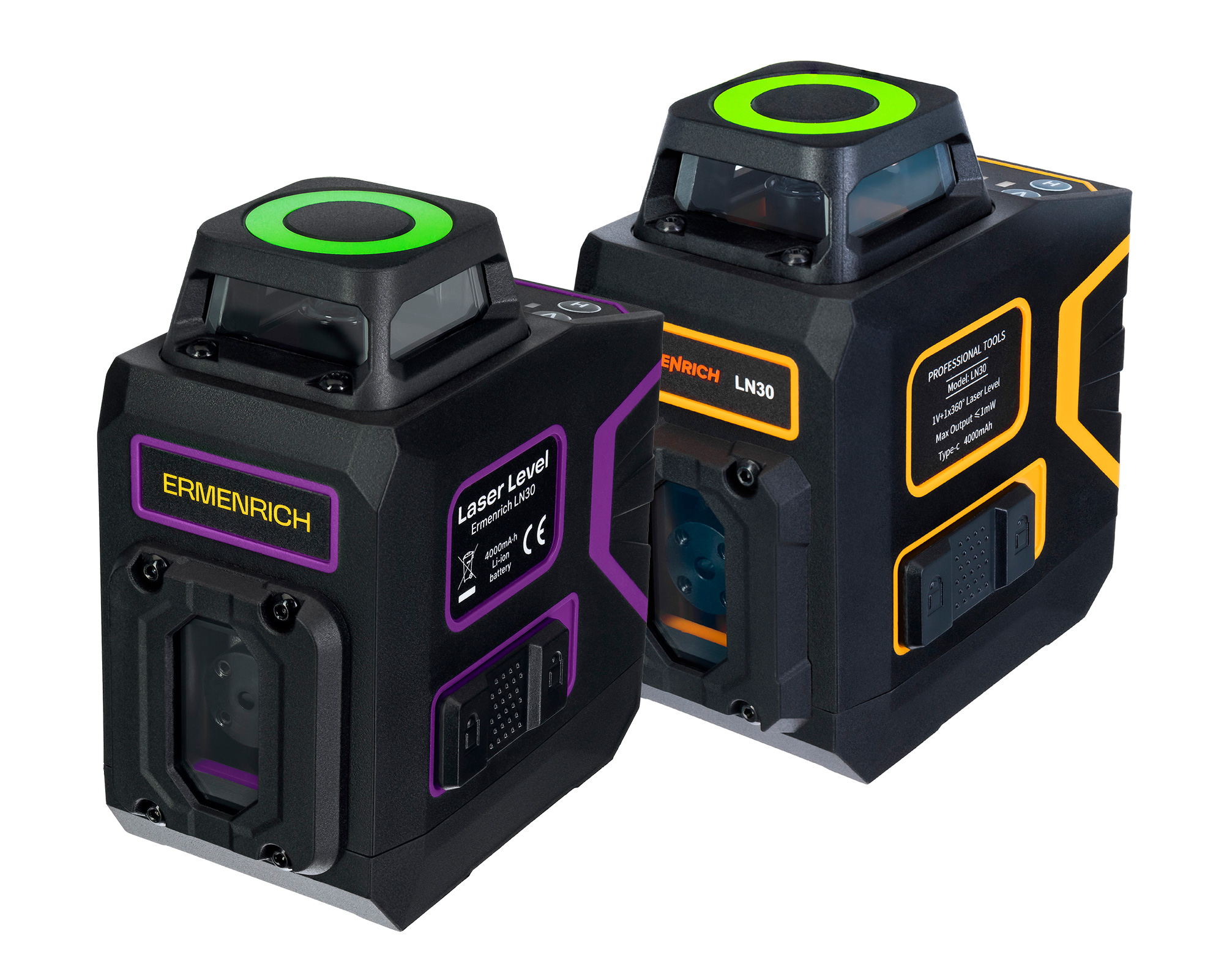 Ermenrich PLUS LN30 Lazer Terazi, dördü yatay ve biri dikey olmak üzere beş yeşil çizgi yansıtır. 360° yatay tarama alanı, zemin onarımı ve dengeleme, priz montajı, fayans döşeme vb. gibi pek çok işin gerçekleştirilmesini sağlar. Cihaz, her türlü inşaat ve yenileme uzmanı tarafından oldukça beğenilmektedir. Yerleşik dengeleyici sistemi, en doğru sonuçları elde etmek için titreşimleri azaltır ve lazer ışın çizgilerini otomatik olarak hizalar.