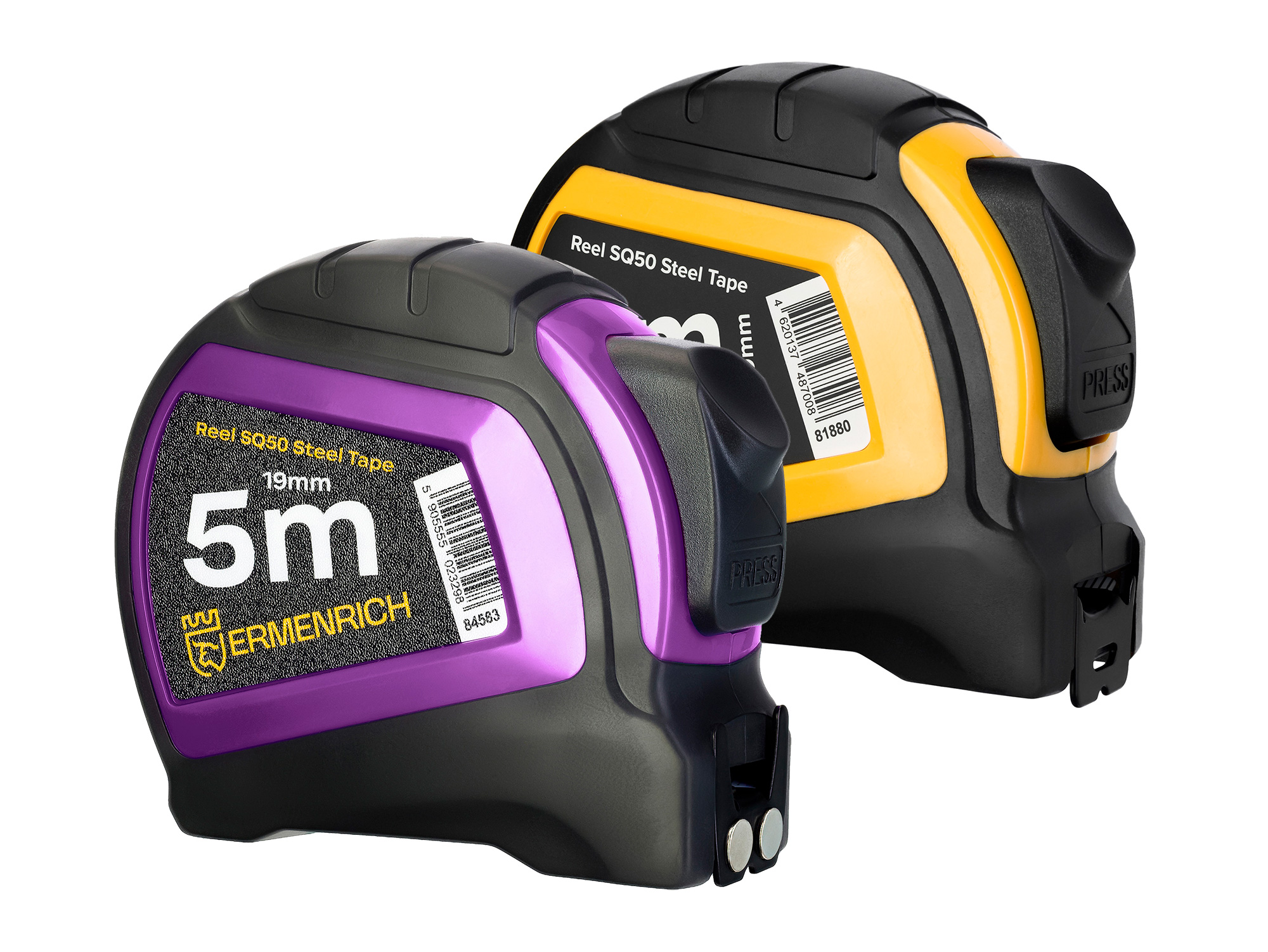 Ermenrich Reel SQ50, profesyonel amaçların yanı sıra günlük yaşamda da kullanışlı olacak klasik bir şerit metredir. Yapı malzemelerinin, mobilya ve dekorasyon elemanlarının boyutlarını, bir şantiyedeki mesafeleri vs ölçebilirsiniz. Şeridin uzunluğu 5 metre, genişliği 19 mm'dir. Malzeme yüksek dayanımlı fırçalanmış çeliktir ve bu nedenle kırılmalara ve hasarlara karşı dayanıklıdır.