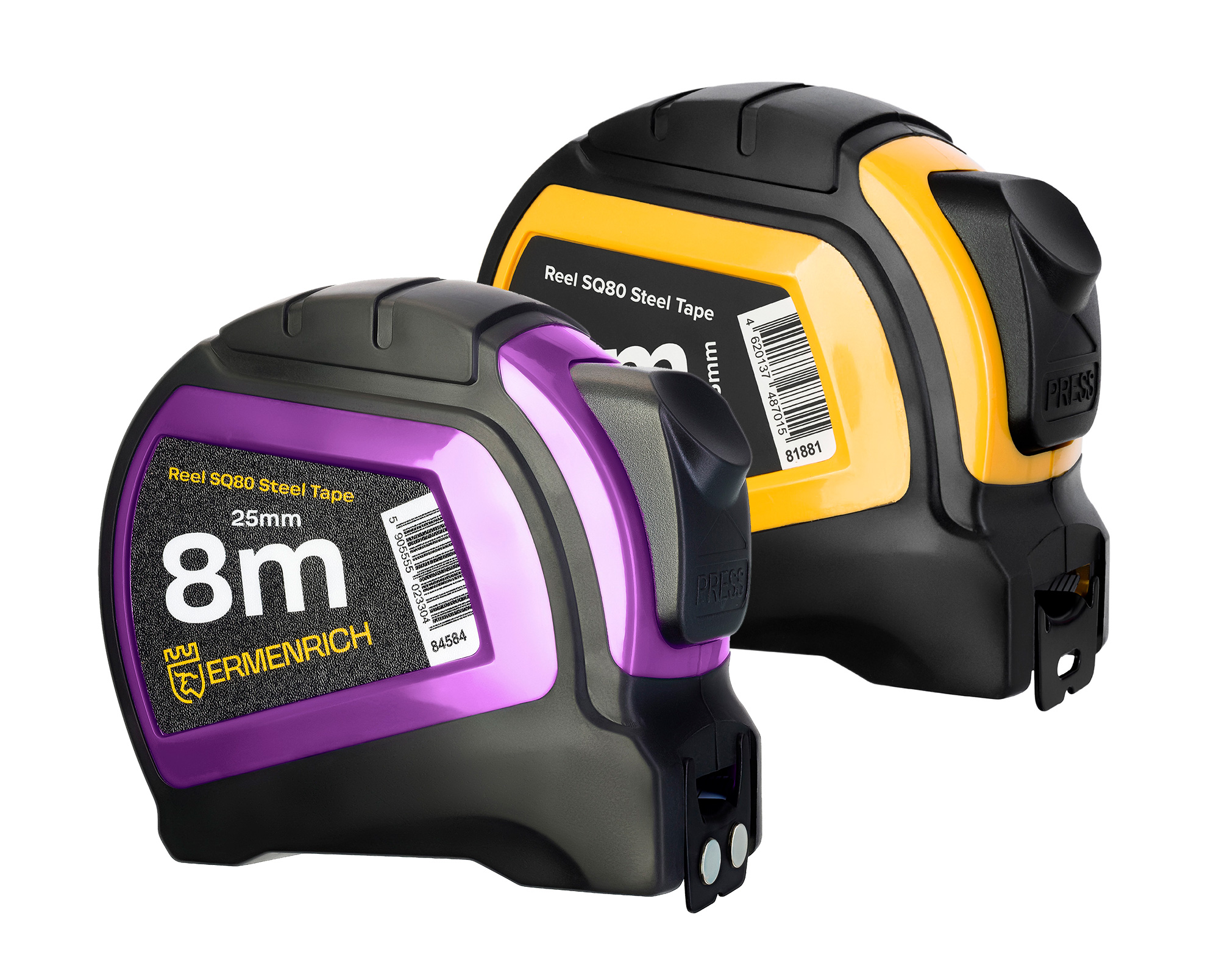 Ermenrich Reel SQ80, fırçalanmış çelikten yapılmıştır ve kasası yüksek dayanımlı ABS-plastikten yapılmış ve kauçuk kaplanmıştır. Bu sayede şerit metre ele sabit bir şekilde oturur ve dış etkenlere karşı dayanıklıdır. Şeridin gevşek ucundaki sağlam kanca, ölçümler sırasında doğru konumlandırmayı sağlar ve yumuşak malzemeleri işaretlemek için de kullanılabilir. Kemer kancası ve el kayışı, aleti sabitlemek ve taşımak için çeşitli seçenekler sunar.